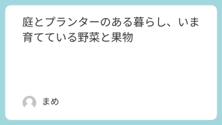 庭とプランターで育てている野菜や果物の記録。絹さや、芽キャベツ、再生ネギ、いちご、ブルーベリー、シャインマスカットを鉢栽培中心で育てています。家庭菜園の途中経過を写真付きで公開。